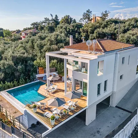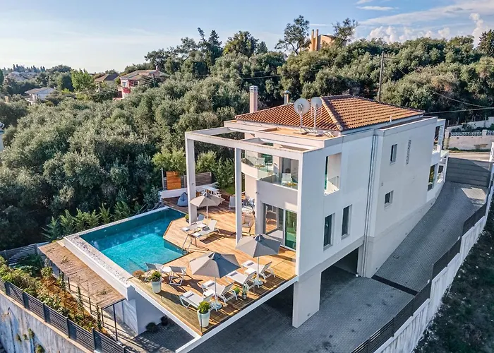 Η White Pearl Premium Villa Corfu Evropouloi απέχει περίπου 15 λεπτά οδικώς από την Παλιά Πόλη της Κέρκυρας και διαθέτει βεράντα με θέα στην πισίνα.